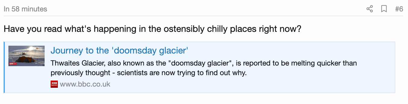 When visitors post URLs, they are automatically unfurled to give a preview of the linked content.
