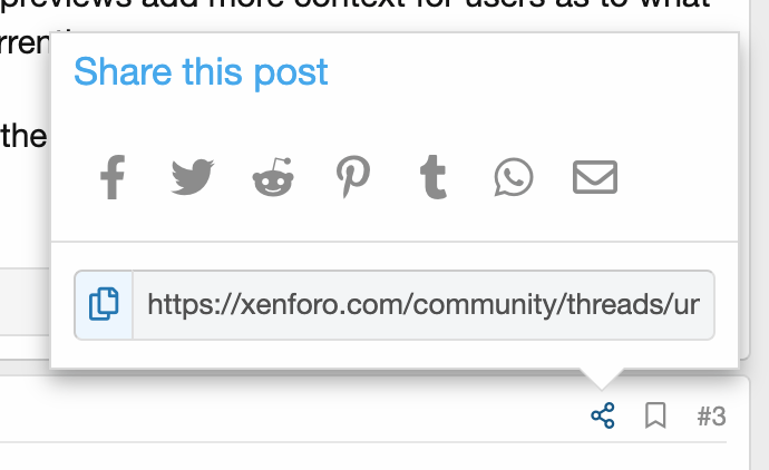 XenForo makes it easy for visitors to your community to share pages and individual content items to a wide range of platforms, with rich previews as standard.