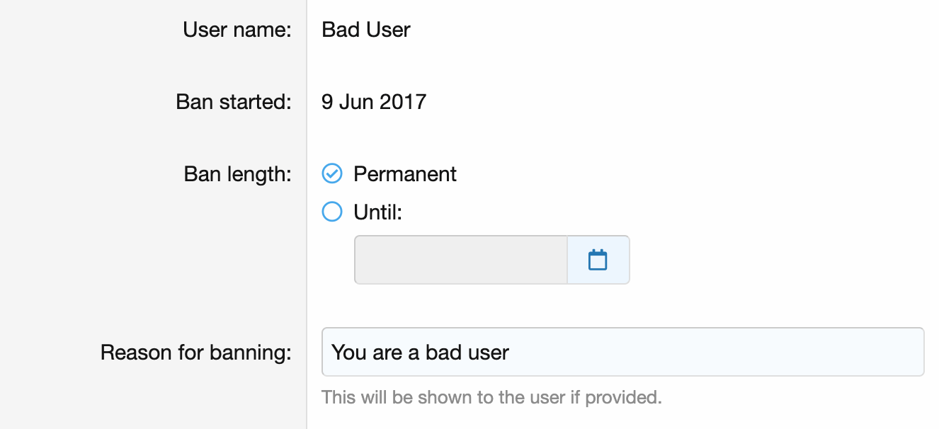 When users misbehave persistently, staff may prevent them from interacting with the community by banning their account, either permanently or for a specified period.