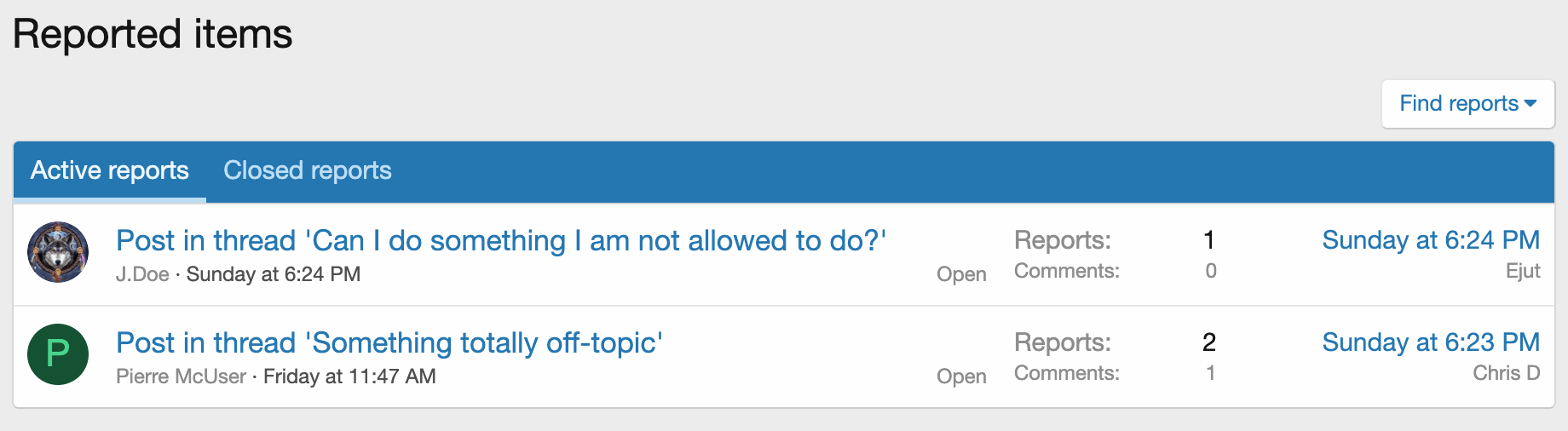 Content posted to a XenForo installation can be reported to staff by other users and will appear in the staff console for their attention.