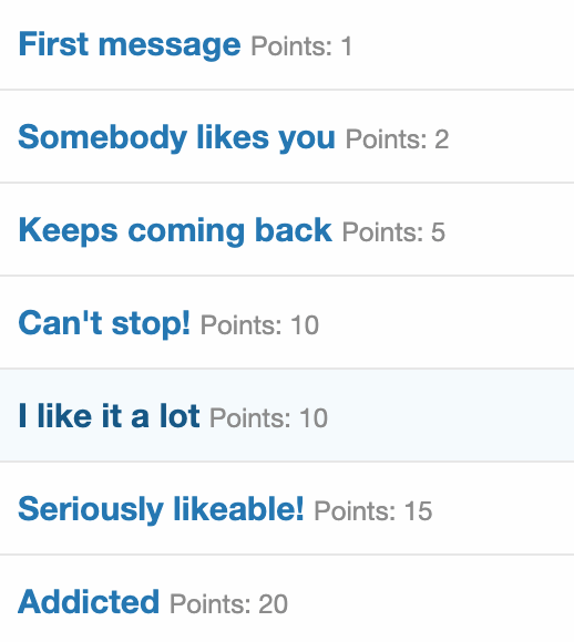Trophies can be defined for a huge variety of criteria or combination of criteria, and each trophy adds a number of 'trophy points' to the receiving user's profile, which can then be used to trigger further actions or rewards, such as an upgrade to the user's 'title'.