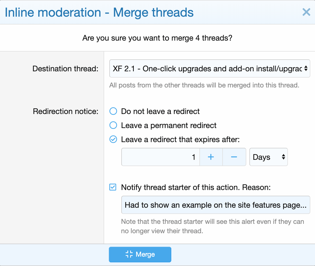 Moderation actions